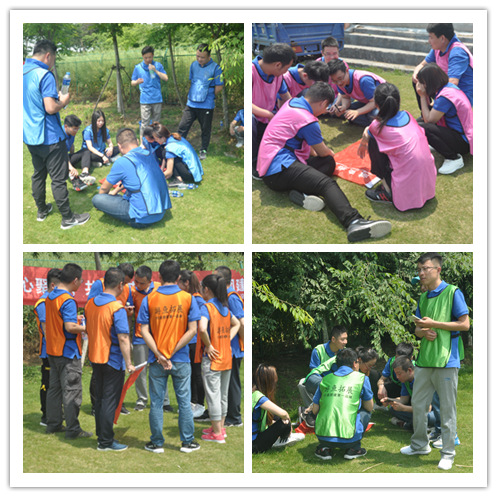 活動首先由歡快的“好、很好、非常好、耶”破冰活動拉開序幕,大家迅速的融入團(tuán)隊,建立信任。緊接著在拓展教練的指導(dǎo)下大家被分成了四組,各組確定隊長后經(jīng)過一番頭腦風(fēng)暴,設(shè)計好隊名、LOGO、口號、對歌及隊形并逐一精彩亮相。